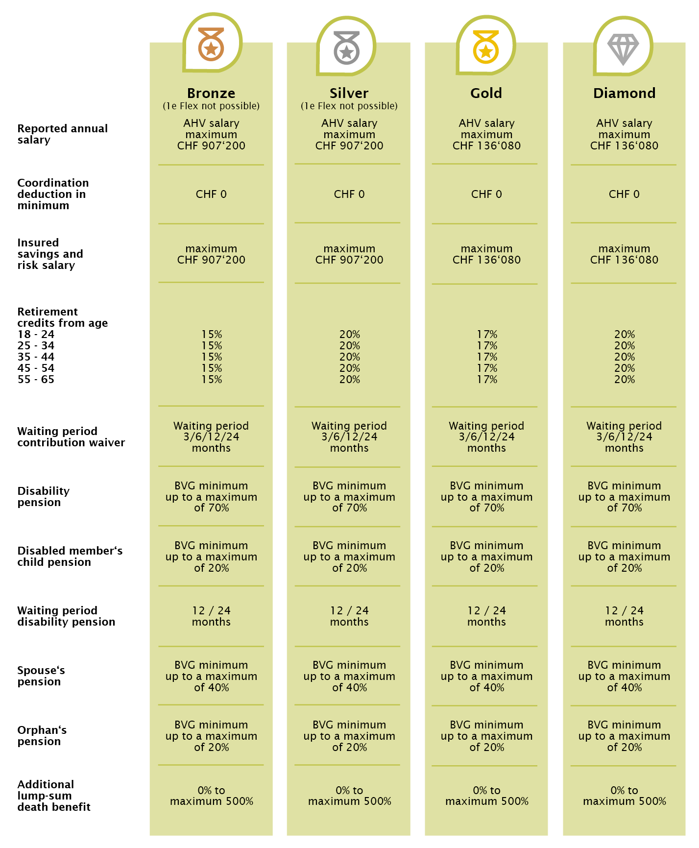 Self-employed athletes, sports consultants, sports planners, sports managers, sports coaches, physiotherapists and those in related professions in the sports industry can choose their BVG pension solution from one of four predefined plans.
